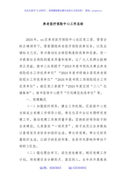 / 养老医疗保险中心工作总结