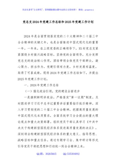 / 党总支2024年党建工作总结和2025年党建工作计划