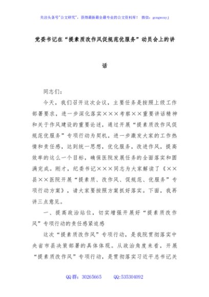 / 党委书记在“提素质改作风促规范优服务”动员会上的讲话