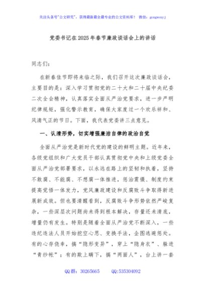 / 党委书记在2025年春节廉政谈话会上的讲话