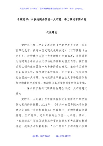 / 专题党课:加快构建全国统一大市场,奋力推进中国式现代化建设