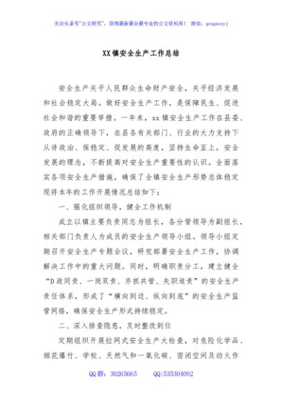 / XX镇安全生产工作总结