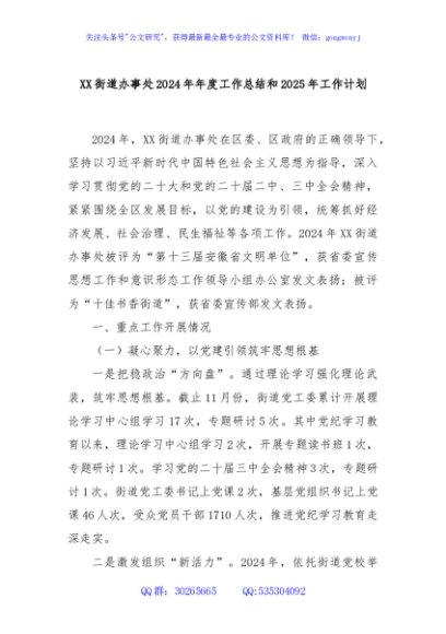 XX街道办事处2024年年度工作总结和2025年工作计划