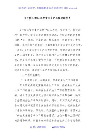/ X开发区2024年度安全生产工作述职报告