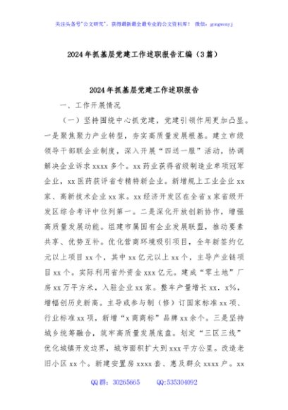 未生成预览图,长按二维码添加 (3篇)2024年抓基层党建工作述职报告汇编 - 公文研究