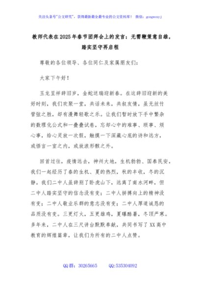 / 教师代表在2025年春节团拜会上的发言:无需鞭策意自雄,踏实坚守再启程