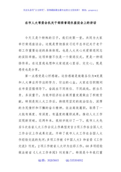 / 在市人大常委会机关干部荣誉退休座谈会上的讲话