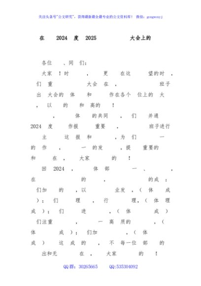 / 在国企2024年度暨2025年初职工代表大会上的讲话
