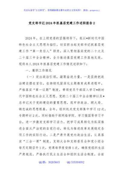 / 党支部书记2024年抓基层党建工作述职报告2