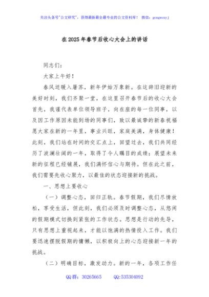 / 在2025年春节后收心大会上的讲话