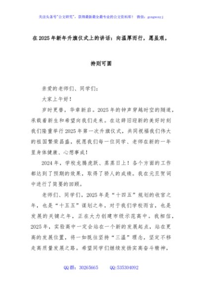 / 在2025年新年升旗仪式上的讲话:向温厚而行,愿虽艰,持则可圆