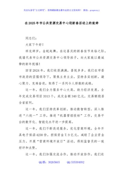 / 在2025年市公共资源交易中心迎新春活动上的致辞