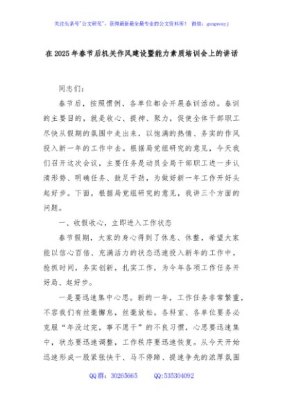 / 在2025年春节后机关作风建设暨能力素质培训会上的讲话