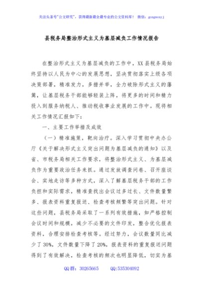 / 县税务局整治形式主义为基层减负工作情况报告
