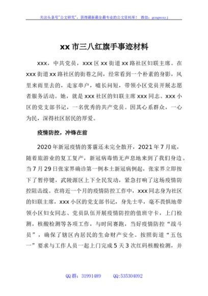 / xx市三八红旗手事迹材料