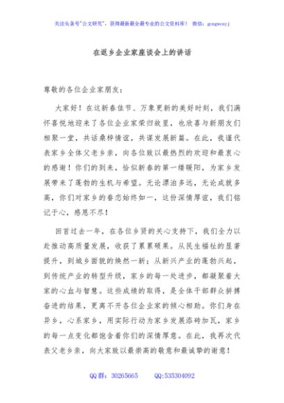 / 在返乡企业家座谈会上的讲话