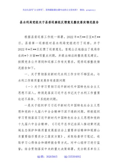 / 县水利局党组关于县委巡察组反馈意见整改落实情况报告