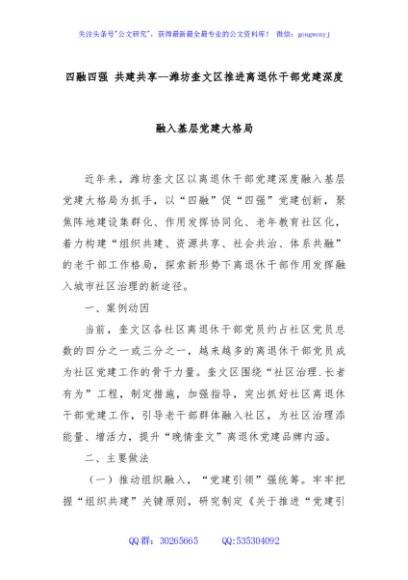 / 四融四强 共建共享--潍坊奎文区推进离退休干部党建深度融入基层党建大格局