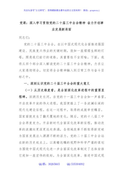 / 党课:深入学习贯彻党的二十届三中全会精神 奋力开创事业发展新局面