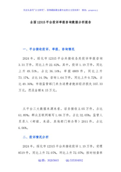 / 全国12315平台投诉举报咨询数据分析报告