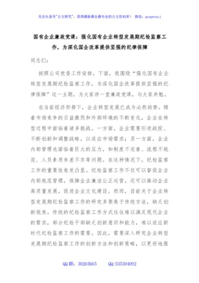 / 国有企业廉政党课:强化国有企业转型发展期纪检监察工作,为深化国企改革提供坚强的纪律保障