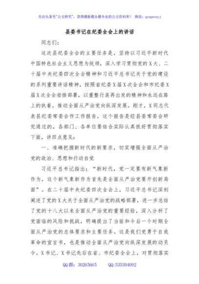 / 县委书记在纪委全会上的讲话