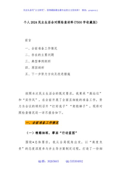 / 个人2024民主生活会对照检查材料(7500字收藏版)