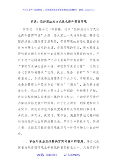 / 党课:坚持用法治方式优化提升营商环境