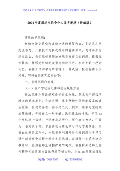 / 2024年度组织生活会个人发言提纲(详细版)