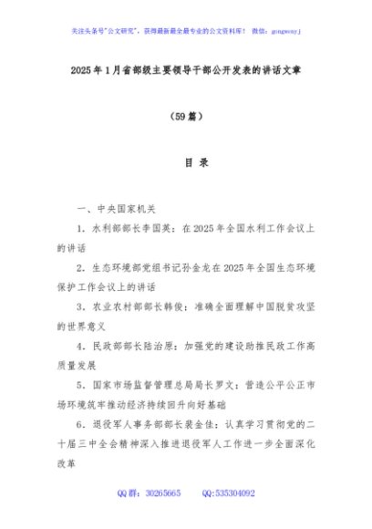 (59篇)2025年1月省部级主要领导干部公开发表的讲话文章