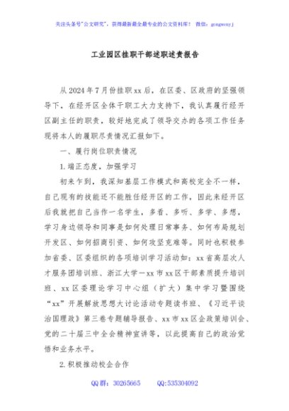 / 工业园区挂职干部述职述责报告