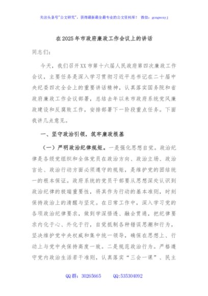 / 在2025年市政府廉政工作会议上的讲话