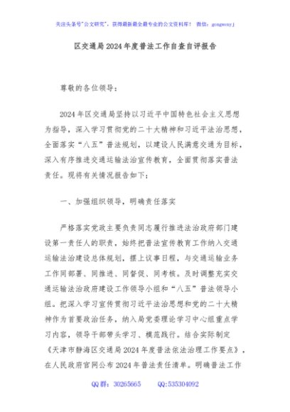 / 区交通局2024年度普法工作自查自评报告
