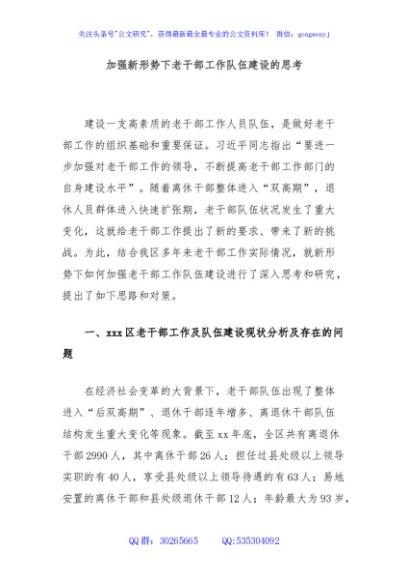 / 加强新形势下老干部工作队伍建设的思考