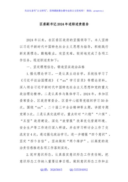 / 区委副书记2024年述职述责报告
