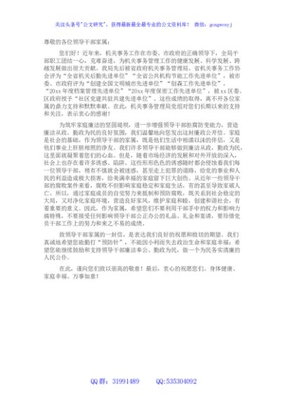 / 致局机关领导干部家属的一封信