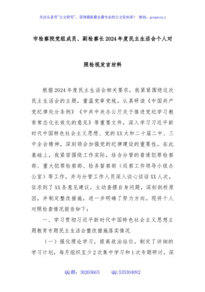 / 市检察院党组成员、副检察长2024年度民主生活会个人对照检视发言材料