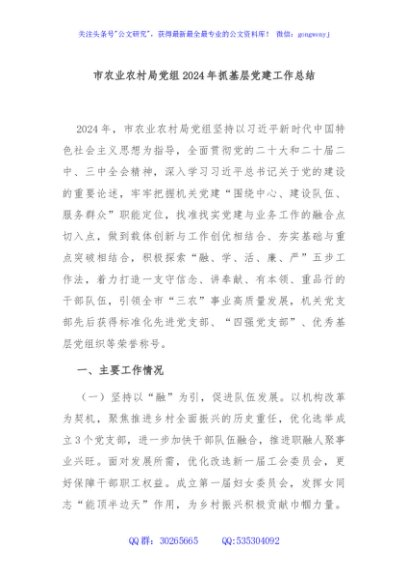 / 市农业农村局党组2024年抓基层党建工作总结