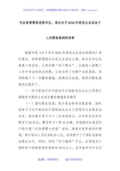 / 市应急管理局党委书记、局长关于2024年度民主生活会个人对照检视剖析材料