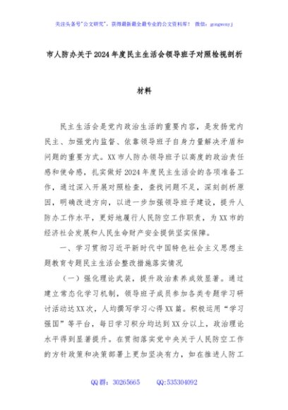 / 市人防办关于2024年度民主生活会领导班子对照检视剖析材料