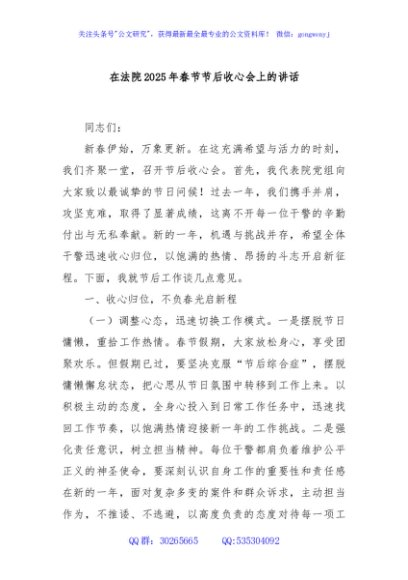 / 在法院2025年春节节后收心会上的讲话