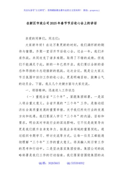 / 在新区市政公司2025年春节节后收心会上的讲话