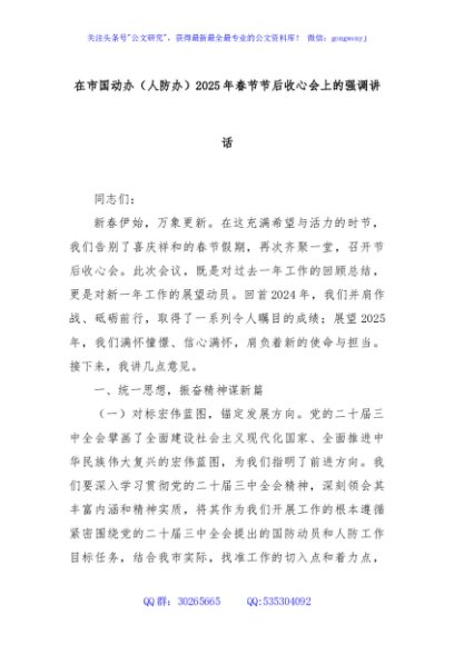 / 在市国动办(人防办)2025年春节节后收心会上的强调讲话