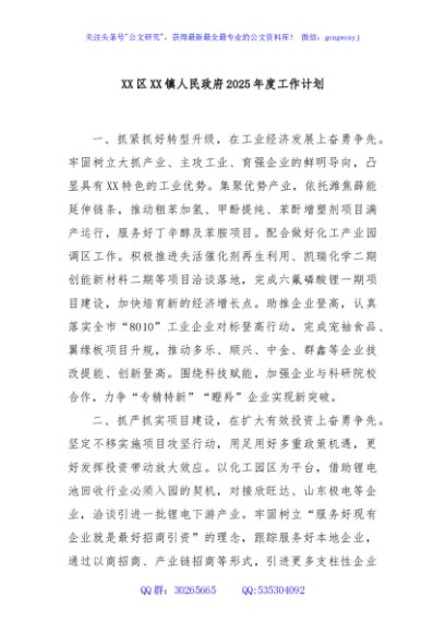 / XX区XX镇人民政府2025年度工作计划