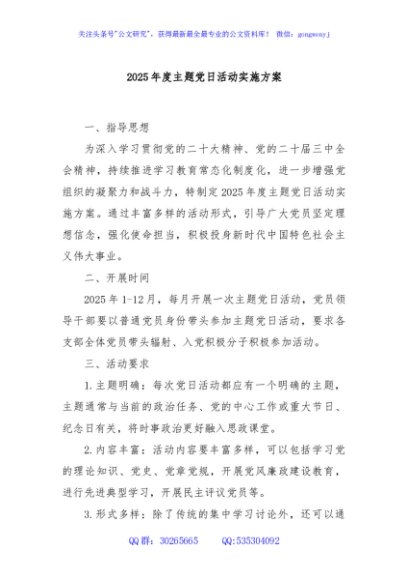 / 2025年度主题党日活动实施方案