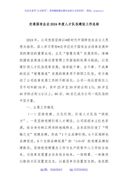 / 交通国有企业2024年度人才队伍建设工作总结