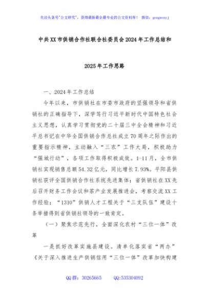 / 中共XX市供销合作社联合社委员会2024年工作总结和2025年工作思路