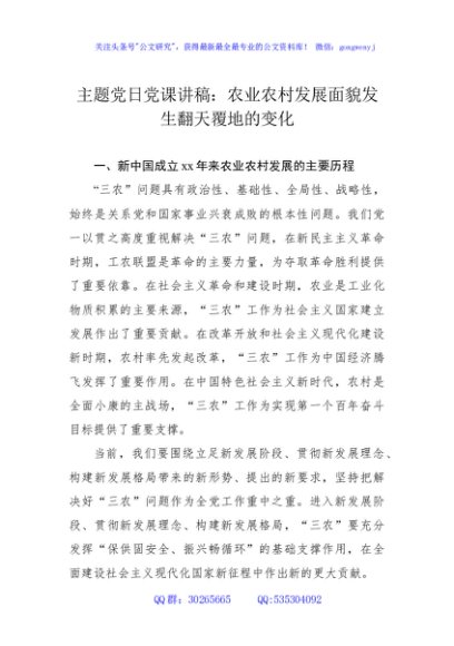/ 主题党日党课讲稿:农业农村发展面貌发生翻天覆地的变化
