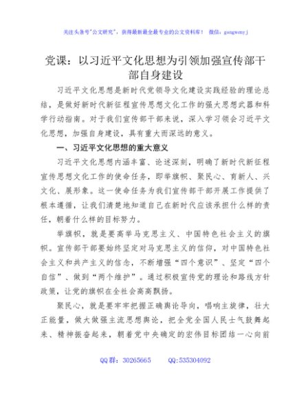 / 党课:以习近平文化思想为引领加强宣传部干部自身建设