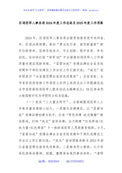 / 区退役军人事务局2024年度工作总结及2025年度工作思路